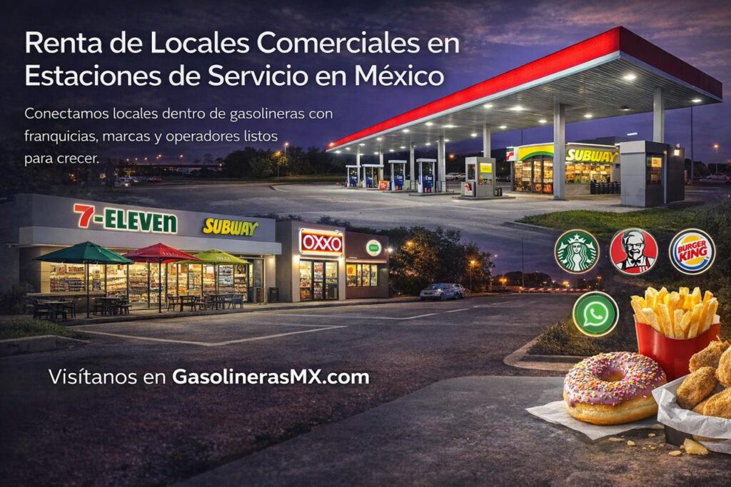 En GasolinerasMX, ayudamos a propietarios de estaciones de servicio a rentar locales comerciales dentro de sus gasolineras a franquicias, cadenas retail, cafeterías, farmacias, fast food, tiendas de conveniencia y negocios compatibles con la operación.